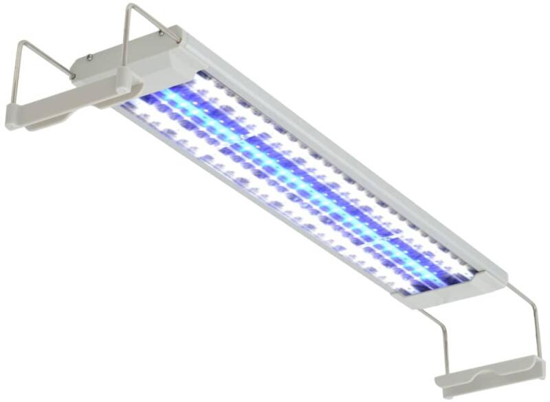 Termék részletekvidaXL alumínium akvárium LED-lámpa 50-60 cm IP67 Ezt az akváriumi lámpát kifejezetten akváriumokhoz és tartályokhoz tervezték. 72 LED izzója kék és fehér fényt bocsát ki, kellemes légkört teremtve éjszaka, és ellátja a növényeket és algákat a szükséges fénnyel. A LED technológia energiatakarékos. Az állítható konzolnak köszönhetően a lámpa stabilan elhelyezhet