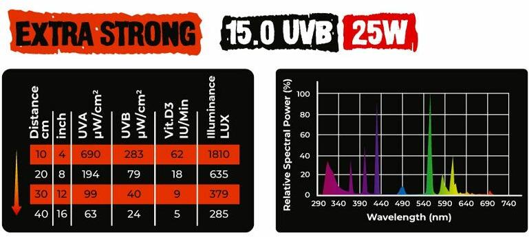 Termék részletekA REPTILE NOVA 15.0 Extra Strong fénycső a legmagasabb szintű UVB sugárzással rendelkezik, a sivatagi területek fényviszonyait utánozva. Nagy intenzitású UVB-sugárzás, amely a fokozott UV-sugárzási igényű fajok számára alkalmas, amelyek természetes környezetben, napfénytől nem védett területeken fordulnak elő. Az UVB hatékony D3-vitamin szintézist okoz, miközben előseg