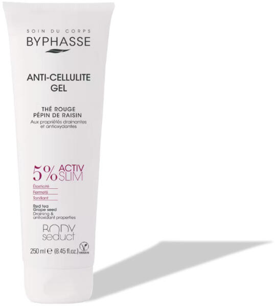 A végtelenül csábító testhez fedezze fel a Body Seducts karcsúsító vonalat, amely segít megőrizni bőre fiatalságát. A BYPHASSE „Active Slim anticellulit gél 5% aktív növényi összetevőket tartalmaz, amelyek helyileg hatnak a cellulitra és a bőr rugalmasságára. Bőre sima és feszes lesz. Vörös tea-, és szőlőkivonatokkal készült formula, amely vízelvezető és antiox
