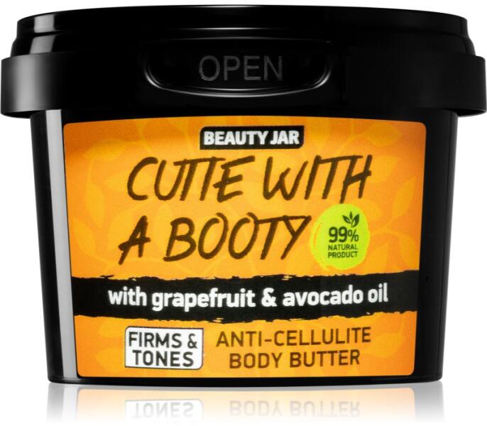 Beauty Jar Cutie With A Booty, 90 g, Testápoló krémek nőknek, A minőségi Beauty Jar Cutie With A Booty készítmény segít mérsékelni a narancsbőr tüneteit, így a bőre megjelenése ismét feszes és sima lesz. Tulajdonságok: gyorsan felszívódik intenzíven hidratál kellemes illatú növeli a bőr rugalmasságát meggátolja a további narancsbőr kialakulását Összetétel: vegá