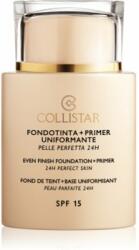 Collistar Even Finish Foundation+Primer 24h Perfect Skin, 35 ml, Bázis alapok nőknek, Minden smink alapja a hibátlan arcbőr, akár feltűnő esti vagy nagyon természetes nappali sminkről van szó. Ebben segít Önnek a tökéletes Collistar Even Finish Foundation+Primer 24h Perfect Skin alapozó. Kiválóan egybeolvad a bőrével, és gondoskodik a színtónusa tökéletes egységesítésér