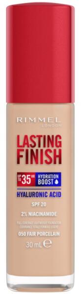 Rimmel London Lasting Finish alapozó Nr. 050 Fair Porcelain árnyalatban. A Rimmel legtartósabb alapozója akár 35 órás tartósságot és verhetetlen hidratálást biztosít. Természetes hatást eredményez, klinikailag bizonyítottan javítja a bőr ragyogását. Tiszta alapozó (D5-mentes), állatkísérletektől mentes. Vegán.