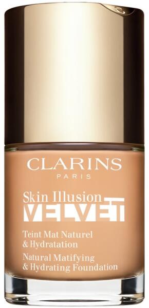 Clarins Skin Illusion Velvet, 30 ml, Alapozó nőknek, Minden smink alapja a hibátlan arcbőr, akár feltűnő esti vagy nagyon természetes nappali sminkről van szó. Ebben segít Önnek a tökéletes Clarins Skin Illusion Velvet alapozó. Kiválóan egybeolvad a bőrével, és gondoskodik a színtónusa tökéletes egységesítéséről. Fedőképességének köszönhetően azonnal eltakarja a