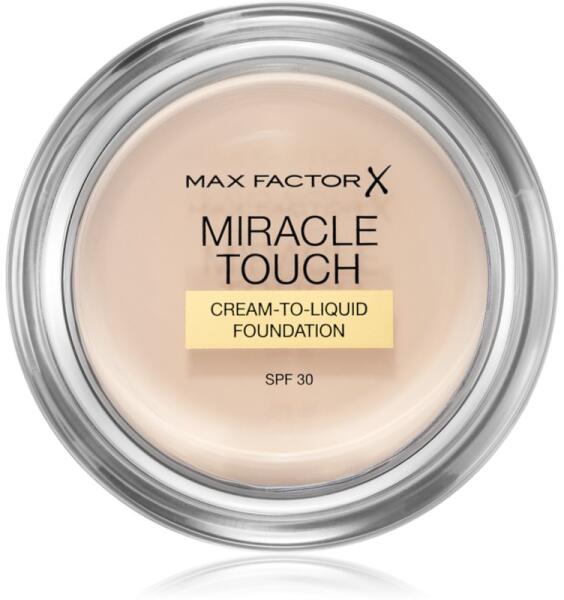Max Factor Miracle Touch, 11,5 g, Alapozó nőknek, Minden smink alapja a hibátlan arcbőr, akár feltűnő esti vagy nagyon természetes nappali sminkről van szó. Ebben segít Önnek a tökéletes Max Factor Miracle Touch alapozó. Kiválóan egybeolvad a bőrével, és gondoskodik a színtónusa tökéletes egységesítéséről. Fedőképességének köszönhetően azonnal eltakarja az olyan