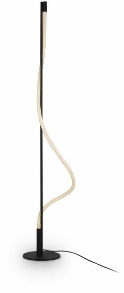 Matt fekete színű fém vázas álló lámpa szilikon cső búrával, meleg fehér színhőmérsékletű beépített LED fényforrással, vezetékre szerelt kapcsolóval.