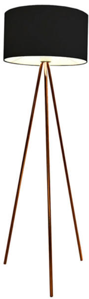 Henger alakú, texil búrás állólámpa vörösréz lábakkal. A csomagolás a fényforrást nem tartalmazza. Specifikációk:Gyártó: AZzardo Cikkszám:: AZ-3010 Foglalat: 1 x E27 Méret (ma x sz x mé): 1500 x 450 x 0 mm IP-védettség: IP20 Anyag: szövet Stílus: Modern Szín: fekete Maximális terhelhetőség foglalatonként: 42 W