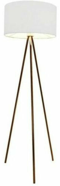 Henger alakú, texil búrás állólámpa vörösréz lábakkal. A csomagolás a fényforrást nem tartalmazza.