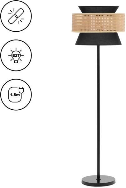 Skandináv stílusú, szövetből készült állólámpa, amely E27-es fényforrással kompatibilis, amit a csomagolás nem tartalmaz...