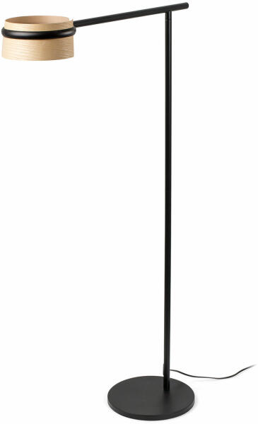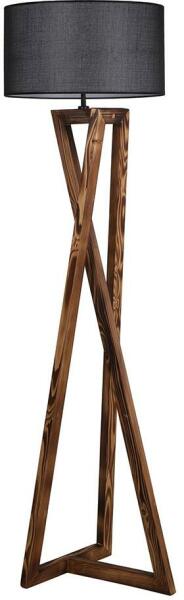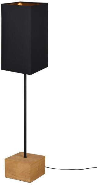 Natúr színű fa vázas dekorációs álló lámpa fekete színű textil búrával, E27-es foglalattal. A lámpa egyéb jellemző(i): vezetékre szerelt kapcsoló.