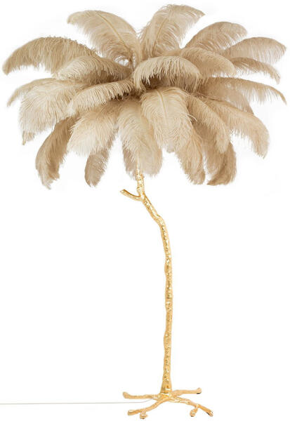 Egyedi, természet ihlette állólámpa, amely 45 darab gondosan elrendezett, bézs színű strucctollal díszített. Az aranyozott réz állvány és a természetes tollak kombinációja art déco stílusú eleganciát kölcsönöz minden térnek. Luxus és természetes elegancia találkozásaA Tiffany állólámpa egy művészi alkotás, amely ötvözi a természet szépségét a modern dizájnn