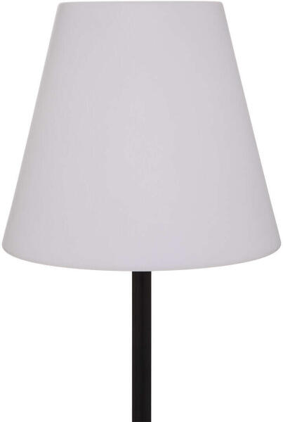 Kültéri állólámpa termékjellemzők: Méretek: 35 x 150 cm Kábelhossz: 200 cm Az alap + cső anyaga: vas Ernyő anyaga: polietilén USB-kábel anyaga: polivinil-klorid LED anyaga: polikarbonát Összeszerelés: Igen Tápellátás: USB Autonómia: 5 óra Izzót tartalmaz: 24 LED LED színe: meleg fehér Színváltás: Nem Súly: 5,9 kg Meleg hangulat Fém talpával és meleg színű búrájá