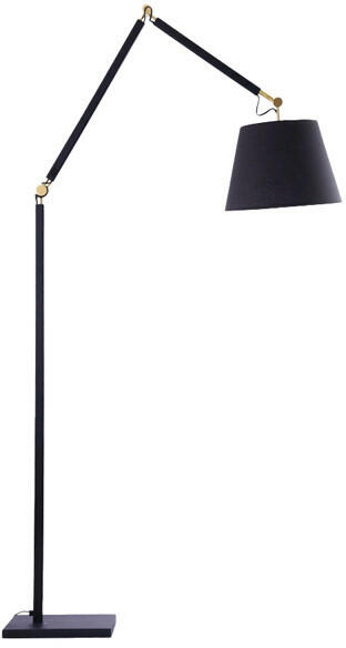 Fekete színű alumínium és fém vázas álló lámpa több ponton dönthető karral és fejjel, beépített LED fényforrással. A lámpa érintőkapcsolós fényerőszabályzóval rendelkezik.