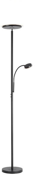Fekete színű fém állólámpa olvasókarral billenthető fejjel és flexibilis karral, beépített LED fényforrással. A lámpa érintőkapcsolós fényerő szabályzóval rendelkezik.