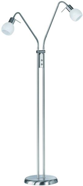 Modern állólámpa egyszerű matt nikkel bevonattal és fehér alabástrom üveg árnyalatokkal. A lámpának két külön-külön be- és kikapcsolható fényforrása van. Ez a lámpa rugalmas beállító karral rendelkezik.