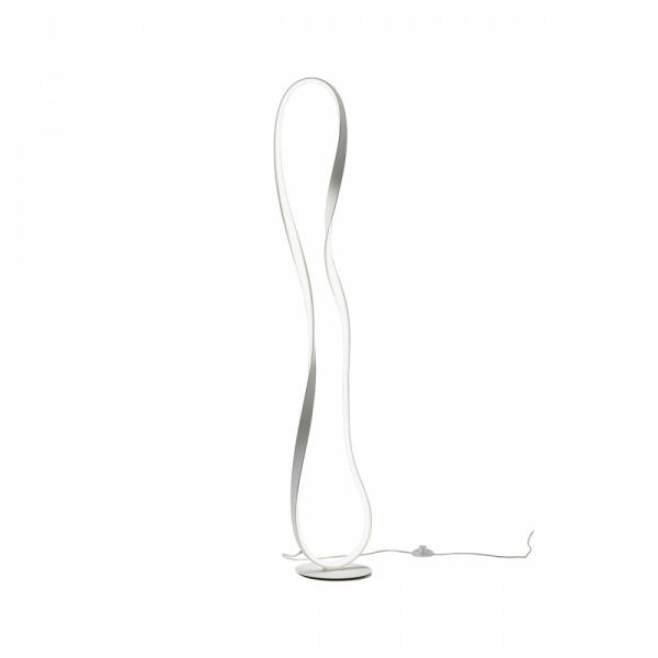 Légies megjelenésű, matt fehérre festett alumínium álló lámpa fehér színű szilikon betétes búrával, beépített LED fényforrással, vezetékre szerelt kapcsolóval. A lámpa fényereje szabályozható.