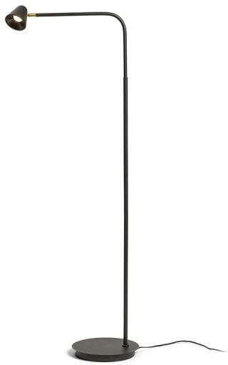 Elegáns LED-es állólámpa fekete színben sárgaréz színű csatlakozóval. A kábelen lévő kapcsolóval a fény intenzitása állítható: 10% 40% vagy 100%.