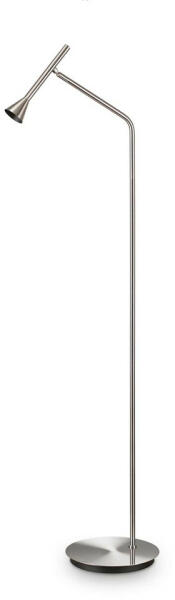 Nikkel színű fém álló lámpa állítható fejjel, 7W meleg fehér fényű beépített LED fényforrással, taposó kapcsolóval.