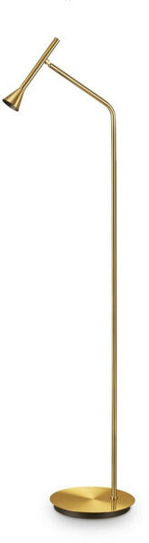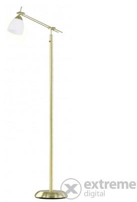 Szatinált sárgaréz színű fém álló lámpa állítható fejjel, 7W meleg fehér fényű beépített LED fényforrással, taposó kapcsolóval.