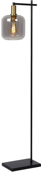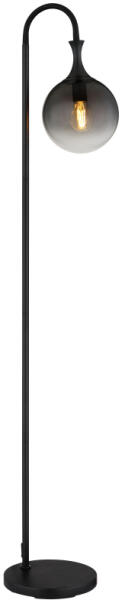 Állólámpa fém fekete matt, füstszínű üveg búra, fekete PVC kábel, lábpedálos kapcsoló a kábelen, HxSzxM: 290x250x1520mm, kábel hossza 1800mm, 1x E27 LED 10W 230V izzó nélkül