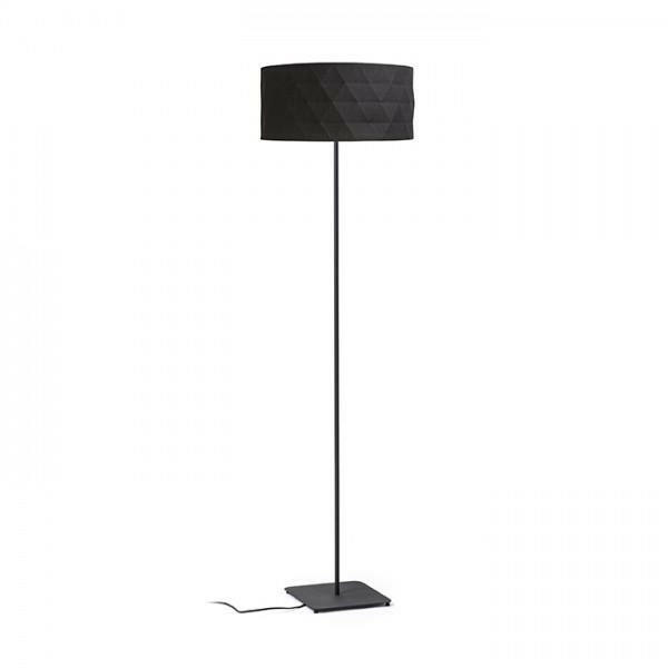 Állólámpa lakkbevonatú fém talppal és textil ernyővel melynek geometriai 3D felülete van. Alkalmas LED E27 fényforrásokhoz.