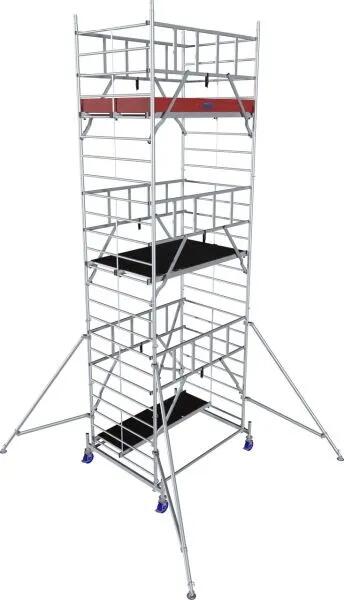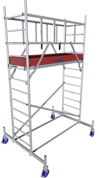 PROTEC Alumínium gurulóállvány - munkamagasság : 4,3 mCikkszám : 940117 TÜV/GS által bevizsgált, az EN 1004 szabvány előírásai szerint gyártott állvány 200 kg/m2 terhelhetőséggel Maximális munk