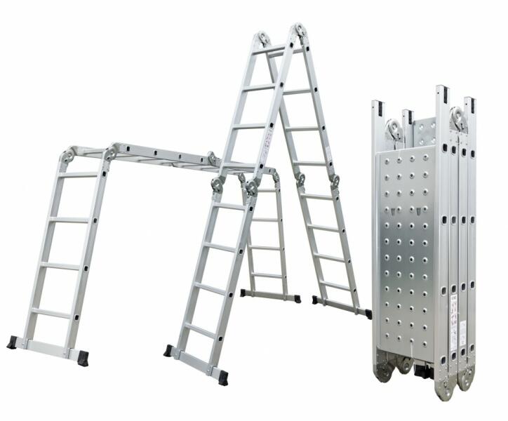 4x4-4,6M többfunkciós ALUMINIUM létra Ez a kiváló modell - szakemberek számára kifejlesztve - meglehetősen merev konstrukcióval rendelkezik, a könnyű alumíniumból készült vázat nem nehéz cipelni, az egyedi tervezésnek köszönhetően pedig könnyen összecsukható és mérete a minimálisra csökkenthető. A felsorolt a tulajdonságoknak nem csak a profik, de akár Ön is haszná