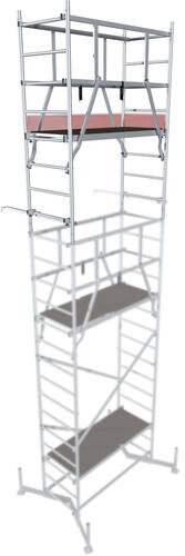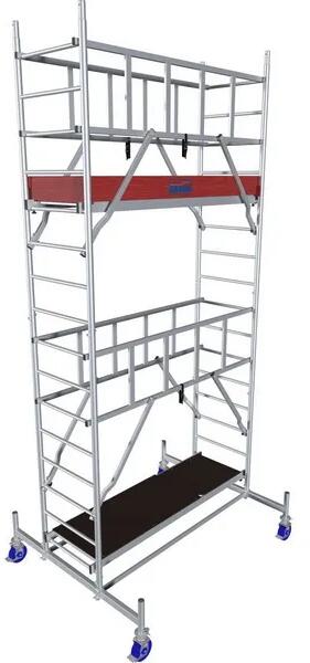 Kivételesen sokoldalú, hihetetlenül átgondolt alumínium gurulós munkaállvány, amelyből pillanatok alatt könnyű, kétágú alumínium létra, vagy állítható magasságú támasztólétra varázsolható. A „létraépítő-készletet méretei kültéri és beltéri használatra is alkalmassá teszik. A multifunkciós állvány gyorsan kétágú létrává vagy támasztólétrává vál
