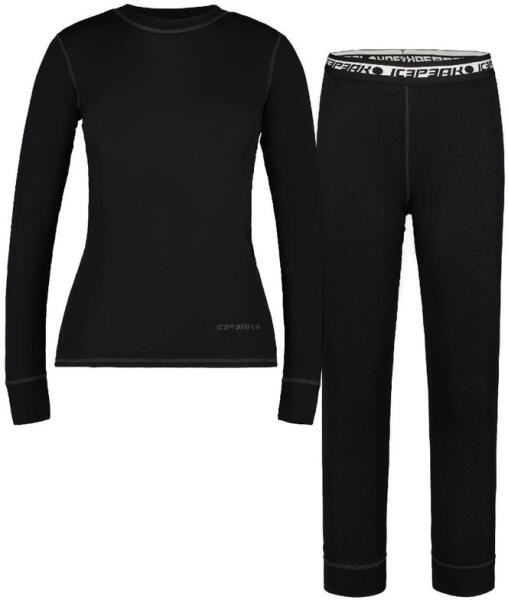 Icepeak Iveye női aláöltöző felső és nadrág egy csomagban. Izzadságelvezető anyaga gyorsan elpárologtatja a nedvességet, ezáltal szárazon tartva a bőrt és növelve a komfortérzetet. Hosszú ujj- és szárkialakítással rendelkezik, a felsőrész hátsó szegélye mélyebben lenyúlik, biztosan takarva a derekat mozgás közben. Lapos varrásai nem irritálják a bőrt, két irán