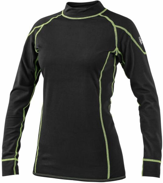 Extra meleg női funkcionális ing, hosszú ujjú, fekete-zöld színben. Anyag: 92% poliészter, 8% elasztán, belül finoman anyagú. Gramázs: 230 g/m2. Ezt a felsőt megtalálja férfi kialakításban.