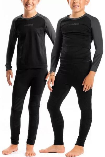 Fundango női A Fundango SEAMLESS JR Baselayer Set junior aláöltöző szett varrásmentes kialakítással készült, melynek köszönhetően megelőzi az intenzív mozgás okozta kidörzsölődések kialakulását. Az elasztikus anyag konstrukció valamint a Slim Fit szabás felelnek maximális mozgásszabadságodért, az aláöltöző nadrág rugalmas derékszegélye pedig aktív mozgás közbe