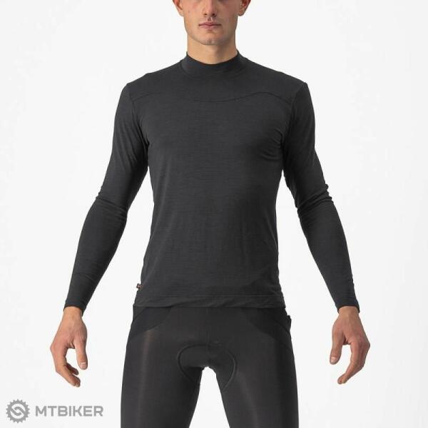 Castelli BANDITO WOOL LS alsóing Merinó gyapjú könnyű keveréke a meleg és a nedvesség eltávolításához mérsékelten intenzív és hideg túrák során . A gyapjú természetes melegét újrahasznosított poliészterrel keverik, hogy javítsák a meleg és kényelmes alapréteg nedvességelvezetését. Rugalmas és remekül illeszkedik, az ujja elég hosszú ahhoz, hogy eltakarja a csuk