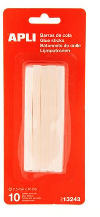 Ragasztó stick, APLI, 7,5 mm x 10 cm A leghatékonyabb és legprofibb kiegészítő dekorációs és kreatív munkákhoz. -tartalék ragasztórudak: 10db/bliszter -méret: 7,5 mm x 10 cm -átlátszó -kompatibilis a 7,5 mm átmérőjű rudakhoz való legtöbb ragasztópisztollyal (javasolt típus: LCA16668) -összetétele pontos és tiszta használatot biztosít -forró olvadékos, nem csepegő -