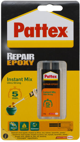 Univerzális epoxi ragasztó keverőszárral 12 g A keverőszáras epoxi ragasztó rendkívül hatékony teljesítményével szinte minden felületen és minden célra alkalmazható. Száradás után átlátszó. Használata könnyő, nincs kézi keverés, nincs kosz. Közvetlenül a felületre kell felvinni. Csaknem valamennyi felülethez jól tapad. Ellenáll a nedvességnek, olajnak és a legt