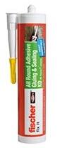Fischer 59389 tömítõragasztó DK, 310ml, fehér Ragasztás és tömítés. Erős, rugalmas kötés bel- és kültéri felhasználásra. Fém, műanyag, beton, tégla, gipszkarton, fa, vakolat, kerá- mia, pórusbeton, rostcement, kemény polisztirolhab, HPL, habkő, PVC, ABS, parafa, zománc, üveg és sok más anyag. Az egyik ragasztandó felületnek nedvszívónak kell lennie.