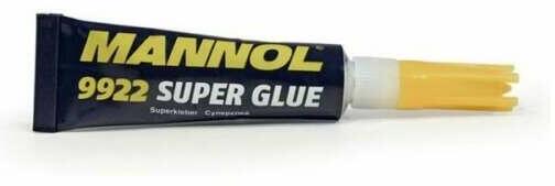Mannol Super Glue Gel pillanatragasztó. Rendkívül erős, azonnali kötés minden típusú műanyag felületen, valamint kerámia, porcelán, üveg termékek, márvány, fémek, polivinil-klorid, vinil, fa, papír, cement, bőr.