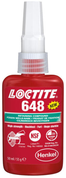 A Loctite 648 alacsony viszkozitású, nagy erősségű rögzítő termék, amelyet jellemzően fogaskerekek és lánckerekek rögzítésére használnak váltómű tengelyeken, valamint forgórészek rögzítésére villanymotorok tengelyein. A Loctite 648 zöld, fluoreszcens, alacsony viszkozitású, nagy erősségű, uretán metakrilát akril, anaerob rögzítő termék, amely illeszkedő henge