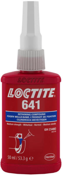 A Loctite 641 hengeres alkatrészek rögzítésére alkalmas termék, elsősorban olyan alkalmazásokhoz, melyeket a működés során gyakran kell szétszerelni. A termék a szorosan kapcsolódó fém felületek között - a levegő kizárásával, anaerob módon - megköt, így megakadályozva a vibráció és a rázkódás által okozott lazulást. Egyidejűleg tömíti is a felületeket. Olyan