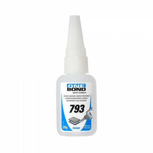 Az OneBond 793 egy általános célú, közepes viszkozitású pillanatragasztó, amelyet porózus, nem porózus és savas felületek ragasztására ajánlanak, beleértve minden típusú fa, forgácslap, parafa és papírterméket. Hab, fémek, hőre lágyuló műanyagok, bőr és kerámia ragasztására is alkalmas, és 120-ig ellenáll°C. Tulajdonságok: Gyors rögzítési idő acélon, alumí