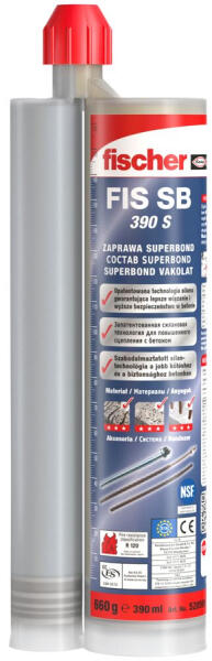 FISCHER FIS FIS SB 390 S (H) Injektáló ragasztó, 390ml (520595) Terméki nformáció: A FIS SB egy hibrid ragasztóanyag, amely sztirolmentes vinilészteren alapul. A szilán technológia rendkívül magas kötési szilárdságot és ezért rendkívül magas terhelési értékeket tesz lehetővé. A FIS SB Superbond ragasztóanyag, a FIS A, RG M menetes szárakhoz, betonacélhoz valamint FRA me