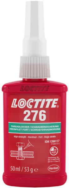 A Loctite 276 nagyon nagy szilárdságú, kis viszkozitású, zöld színű, metakrilát bázisú csavarrögzítő termék. Jellemző rögzítési idők 3, 3 és 5 perc acélon, sárgarézen és rozsdamentes acélon. Ipari olajokkal enyhén szennyezetett felületeken is alkalmazható. Nikkelezett menetek rögzítésére is alkalmas. Fluoreszcens a jelenlét ellenőrzésére. Nagy szilárdságú an