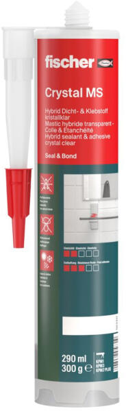 FISCHER MS-290 Tömítőragasztó, áttetsző, 290 ml (503317) Terméki nformáció: A fischer KD 290 univerzális tömítőragasztó egykomponensű hibrid polimer. A kiváló minőségű MS polimer lehetővé teszi a rugalmas ragasztást a rezgéscsillapító és a feszültségkompenzáló csatlakozások számára. Ezenkívül a nem nedvszívó felületekhez is alkalmazható. A rendkívül nagy 1