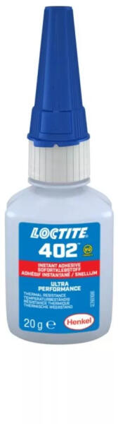 A Loctite 402 rendkívül nagy teljesítményű, gyorsan kötő pillanatragasztó, amely szélsőségesen magas, akár 135 °C-os működési hőmérséklet mellett is megbízható teljesítményt nyújt. A Loctite 402 pillanatragasztóval gyorsan és erősen összeragasztható a műanyagok, gumik és fémek széles választéka – és ebbe a nehezen ragasztható anyagok is beletartoznak. A Locti