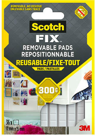 A Scotch-Fix eltávolítható tapadópárnák illeszkedő gittpárnák és nem hagynak maradványokat, ideálisak könnyűszerkezetek festett vagy tapéta felületekre történő Pl. papír, fénykép, plakát, kártya és egyebek felszereléséhez. Ezek az akár 300g teherbírású eltávolítható tapadópárnák különféle porózus és nem porózus felületekre is tökéletesen tapadnak. Ninc