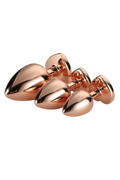Gleaming Love - szíves anál kúp dildó szett - rosegold (3 részes) Anál tágítás kíméletesen és szexin! Gyémántos csillogású kövekkel díszített, 3 részes análkúp tágító szett, 3 különböző méretű fém anál pluggal, mellyel fokozatosan tágíthatod popsidat, hogy igazán élvezetes legyen az anális szex! EXTRA: magas minőség, kiváló anyagból rózsaarany színben -
