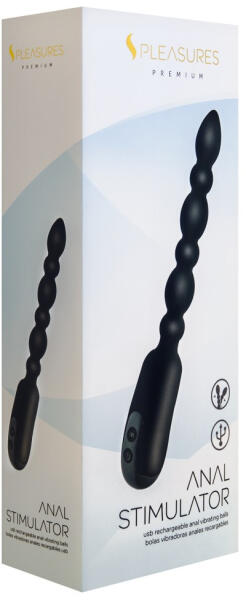 Kiváló minőségű anyagból készített, sima, selymes felületű, 6 gömbből álló, rugalmas, 7 rezgési funkcióval rendelkező, biztonságos fogóval ellátott záróizom tágító, lazító eszköz, melyet kezdők is használhatnak. Uniszex, férfiaknak és nőknek egyaránt ajánlott. Tisztítása: használat előtt és használat után langyos szappanos vízzel és segédeszköz tisztí