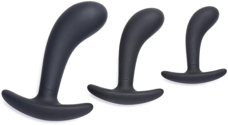 Ez a csomag 3 edződugót tartalmaz az anális örömök gyakorlásához. 7 x 2,2 cm, 8,5 x 2,7 cm és 11 x 3,5 cm méretű dugókkal rendelkezik. Mindegyik formája lekerekített, ívelt és puha. Ívelt alappal és sima felülettel. Tipp: Mindig vízalapú kenőanyagot használjon.