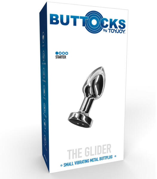Buttocks The Glider vibrációs fém anál dildó, akkumulátorral (S méret - 7,6 cm) Egyszerűen használható, anál izgatásra tervezett kúpos fenékdugó. Anyaga fém, tehát teljesen merev felülettel rendelkezik, de az izgalmasnak ígérkező behelyezés után gyorsan átveszi a test hőmérsékletét. A stimuláció kiegészíthető vibrációval, ehhez csupán a talprészén lévő egyet