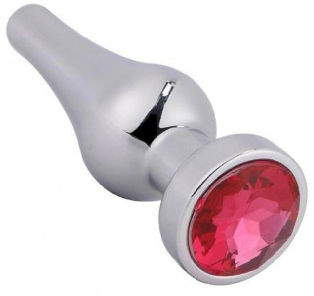 Fém anál dildó, hosszúkás, piros kristállyal (ezüst) Fémből készült fenékdugó, hosszított, elkeskenyedő felső résszel, mely segíti a könyebb behelyezést. Teljes hossza: 10 cm Behelyezhető hossz: 8,5 cm A törzs legnagyobb átmérője, a kiszélesedő résznél: 3 cm Tömege: 81 gramm Anyaga: fém Zacskós csomagolás