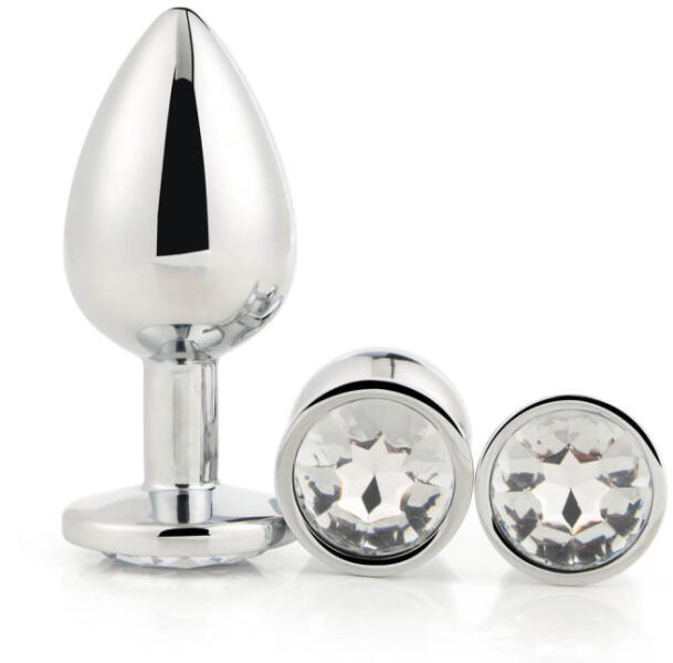 Gleaming Love - anál kúp dildó szett - ezüst (3 részes) Anál tágítás kíméletesen és szexin! Gyémántos csillogású kövekkel díszített, 3 részes análkúp tágító szett, 3 különböző méretű fém anál pluggal, mellyel fokozatosan tágíthatod popsidat, hogy igazán élvezetes legyen az anális szex! EXTRA: magas minőség, kiváló anyagból - akár ékszerként is viselhet