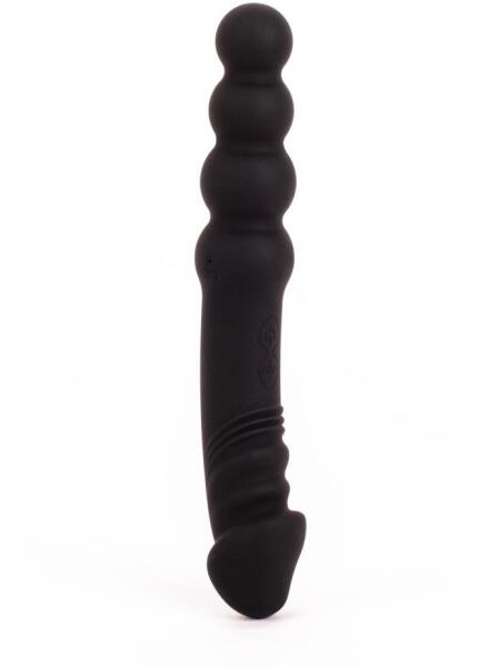 Kiváló minőségű anyagból készített, selymes, bordázott felületű, flexibilis, két eltérő átmérőjű golyóból kialakított, 3 rezgési és 10 sebességi fokozattal rendelkező, 42 °C-ra felmelegíthető, könnyen kezelhető fenékdugó. Tisztítása: minden használat előtt és minden használat után langyos szappanos vízzel és segédeszköz tisztítóval kell lemosni. Vízbá